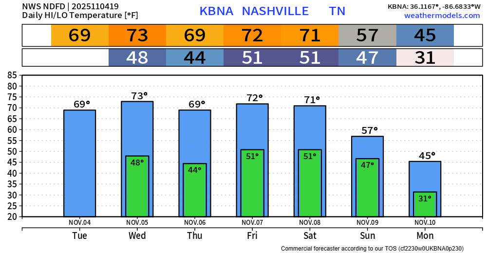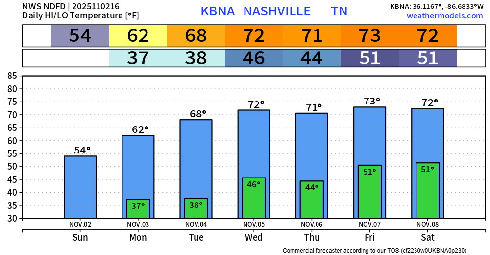 High temps will surge into the low 70s today. Local high school teams that moved their playoff games up to today will be treated with nice weather. Temps near 60° by kickoff, mid 50s by the end of the game.