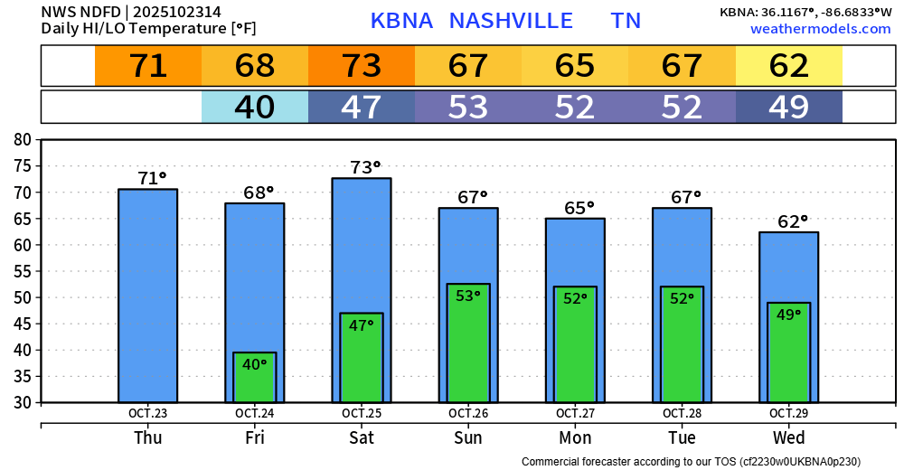 “[I]f you don`t have outdoor plans, you may want to rethink that.” says NWS Nashville. Whether it’s the Vandy game, some outdoor Fall activity – I’d do it all today.