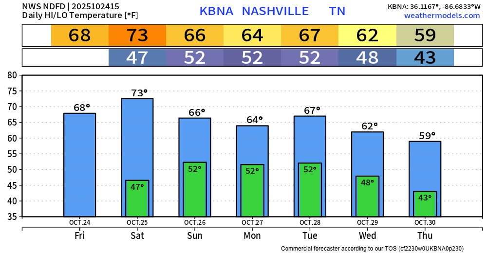 “[I]f you don`t have outdoor plans, you may want to rethink that.” says NWS Nashville. Whether it’s the Vandy game, some outdoor Fall activity – I’d do it all today.