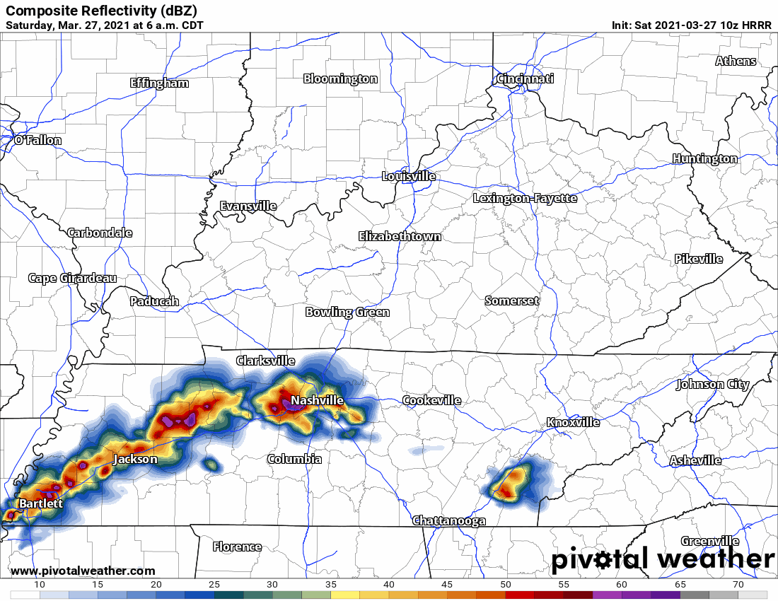 HRRR Model below shows off and on showers this afternoon before perhaps a more substantial line of storms rolls through overnight.