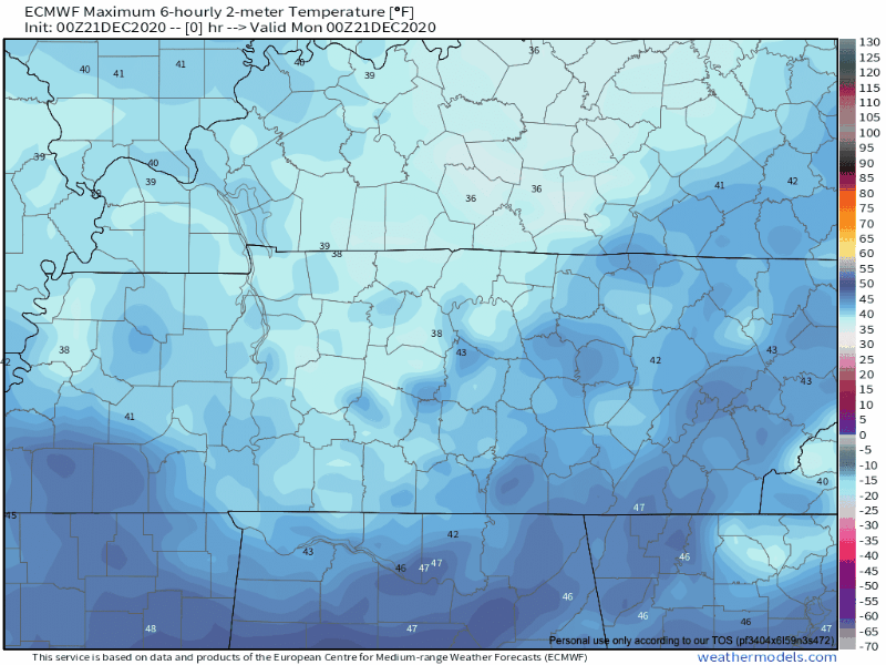 We have sunny skies and temps warming up through the afternoon, highs around 48°.