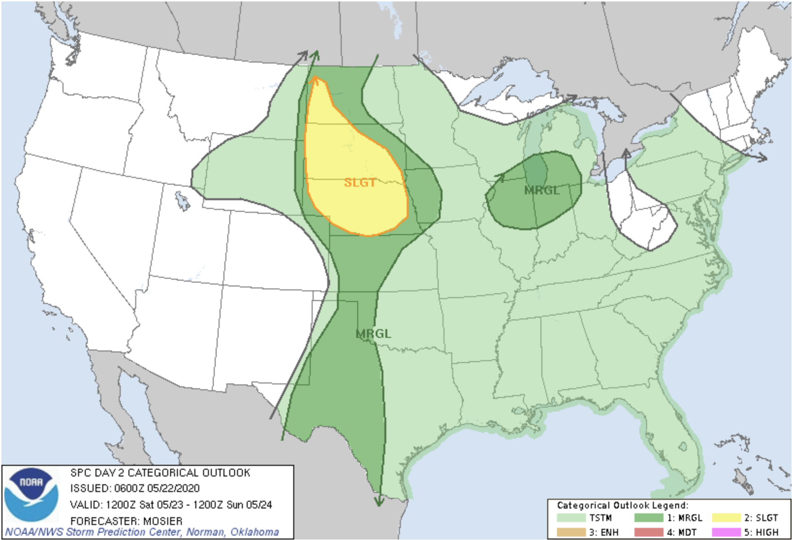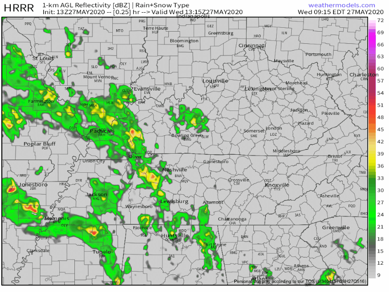 Off and on rain this morning will hang around this afternoon. A few thunderstorms may be embedded in the afternoon rain, but high winds, hail, and tornadoes are not expected locally.