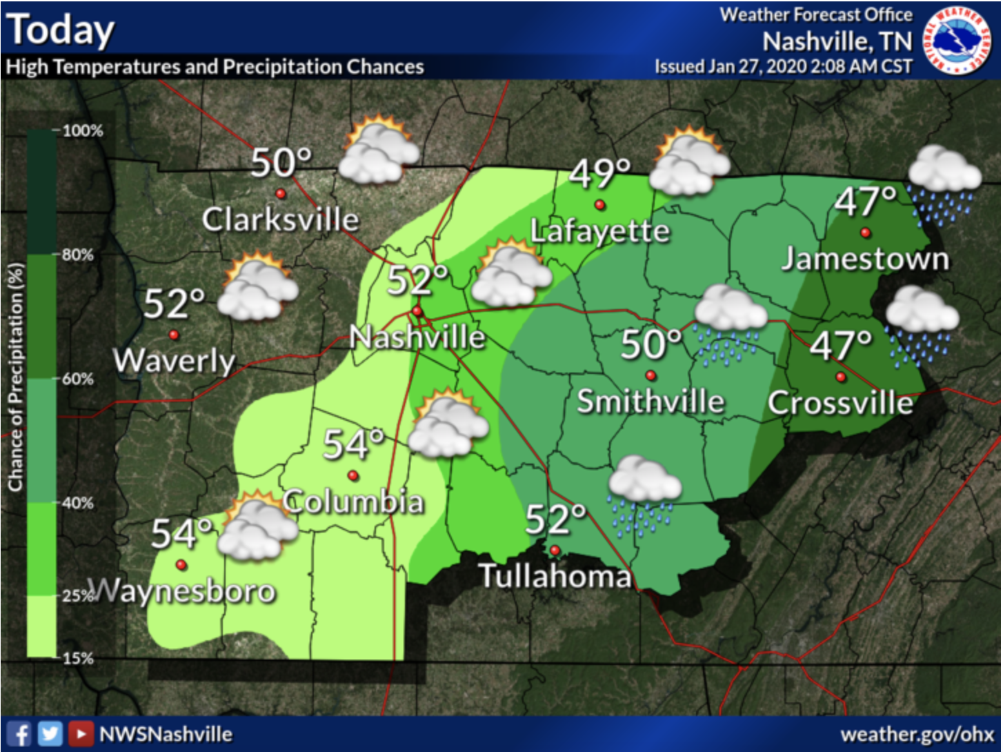 Temps expected to go well above normal once again. Might even test record high in Nashville, which is 75°
